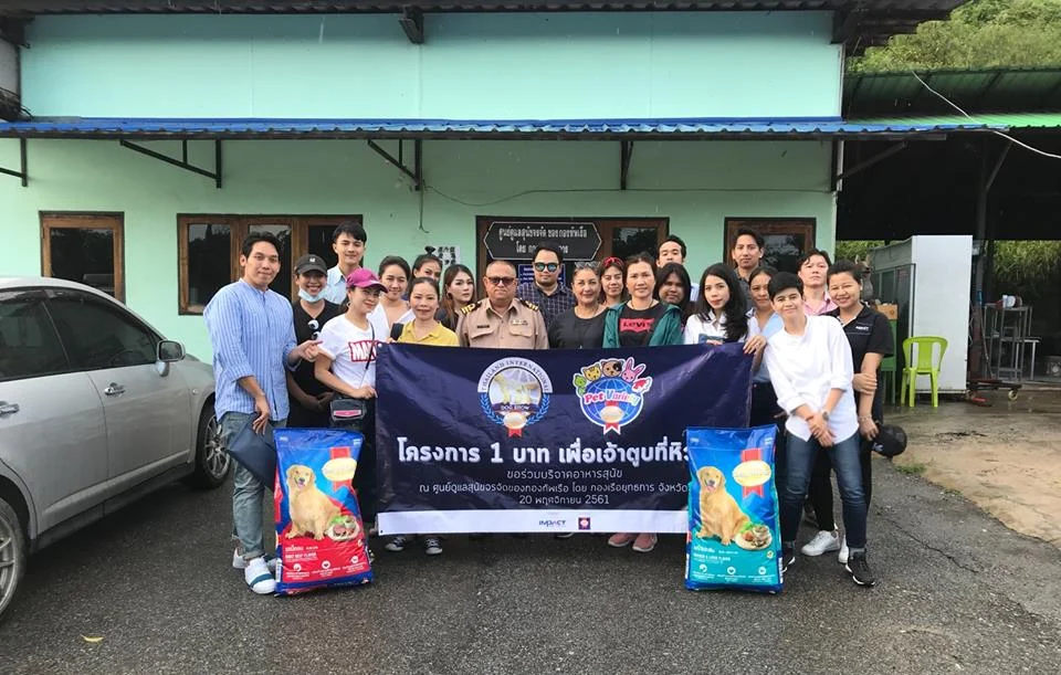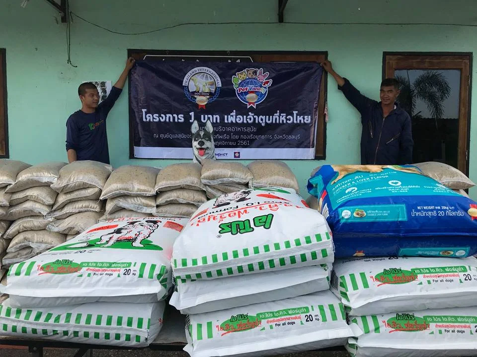 ได้นำรายได้จากโครงการ 1 บาทเพื่อเจ้าตูบที่หิวโหย โดยร่วมซื้อข้าวสารและอาหารสุนัข และนำไปบริจาคให้แก่ศูนย์ดูแลสุนัขจรจัดของกองทัพเรือ โดย กองเรือยุทธการ จังหวัดชลบุรี เพื่อใช้ช่วยเหลือและดูแลสุนัขจรจัดกว่า 1,300 ตัว ให้มีคุณภาพชีวิตที่ดีขึ้น ทั้งนี้ ทางคณะผู้จัดงาน ต้องขอขอบพระคุณท่านผู้ใจบุญทุกท่าน ที่ร่วมเป็นส่วนหนึ่งในการบริจาคเพื่อช่วยเหลือน้องหมามา ณ ที่นี้ค่ะ