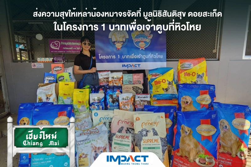 บริษัท อิมแพ็ค เอ็กซิบิชั่น แมเนจเม้นท์ จํากัด ในนามเจ้าของโครงการฯ และทีมงาน บ๊อก Vlog ได้ร่วมบริจาคอาหารสุนัขและแมว ช่วยเหลือน้องสุนัขและน้องแมวจรจัด ที่มูลนิธิสันติสุขเพื่อสุนัขและแมวจรจัด ดอยสะเก็ด จ.เชียงใหม่